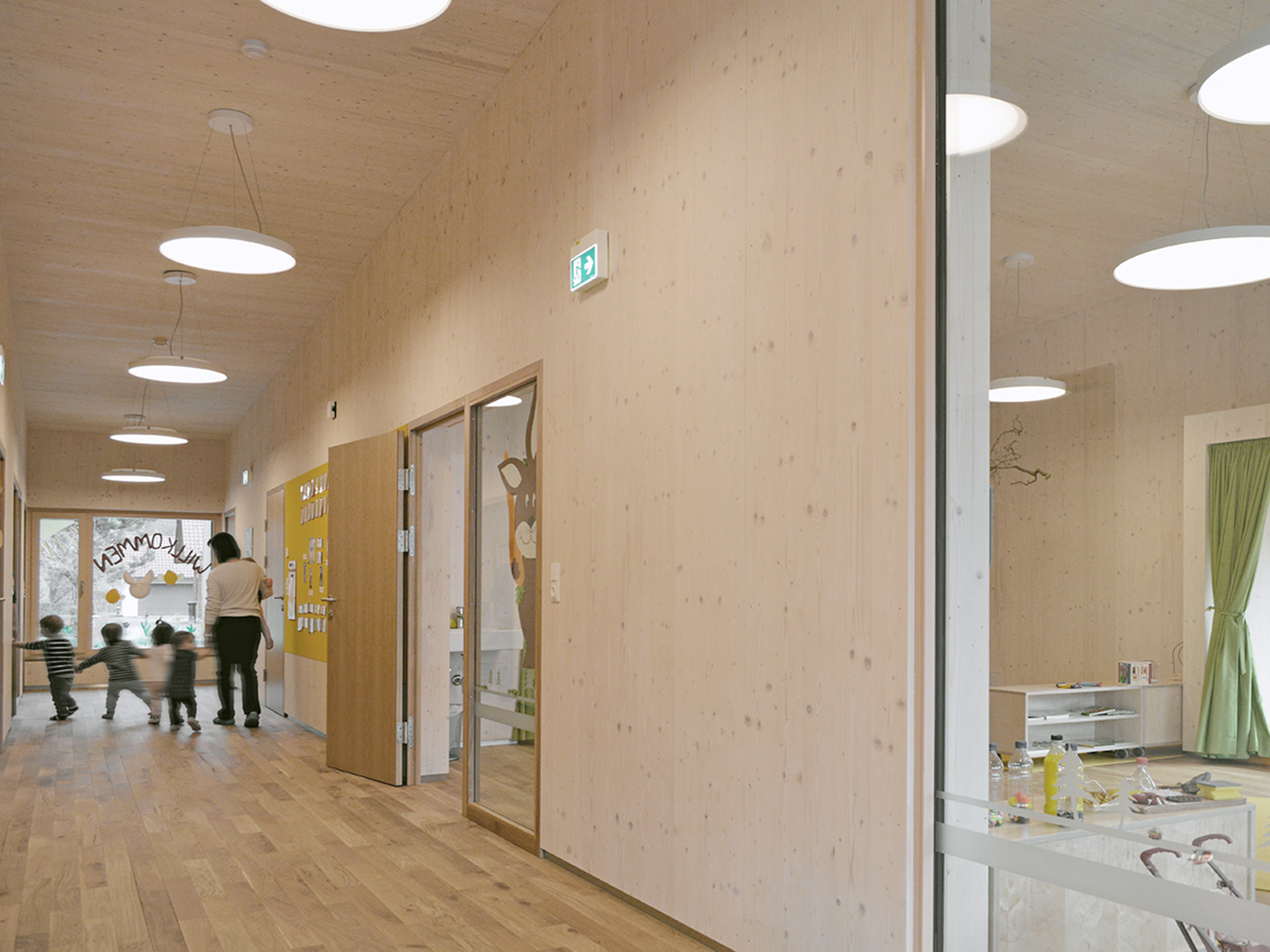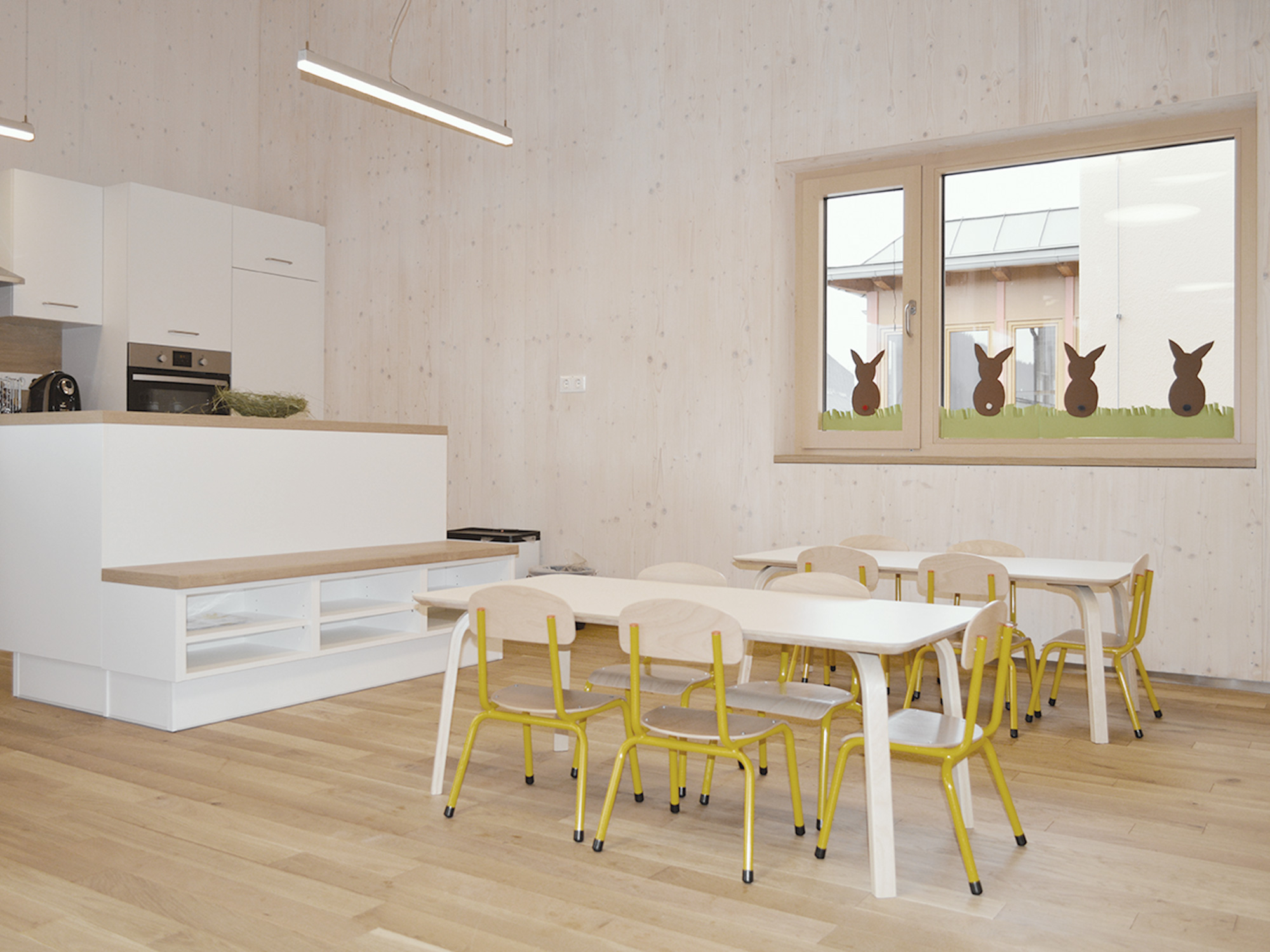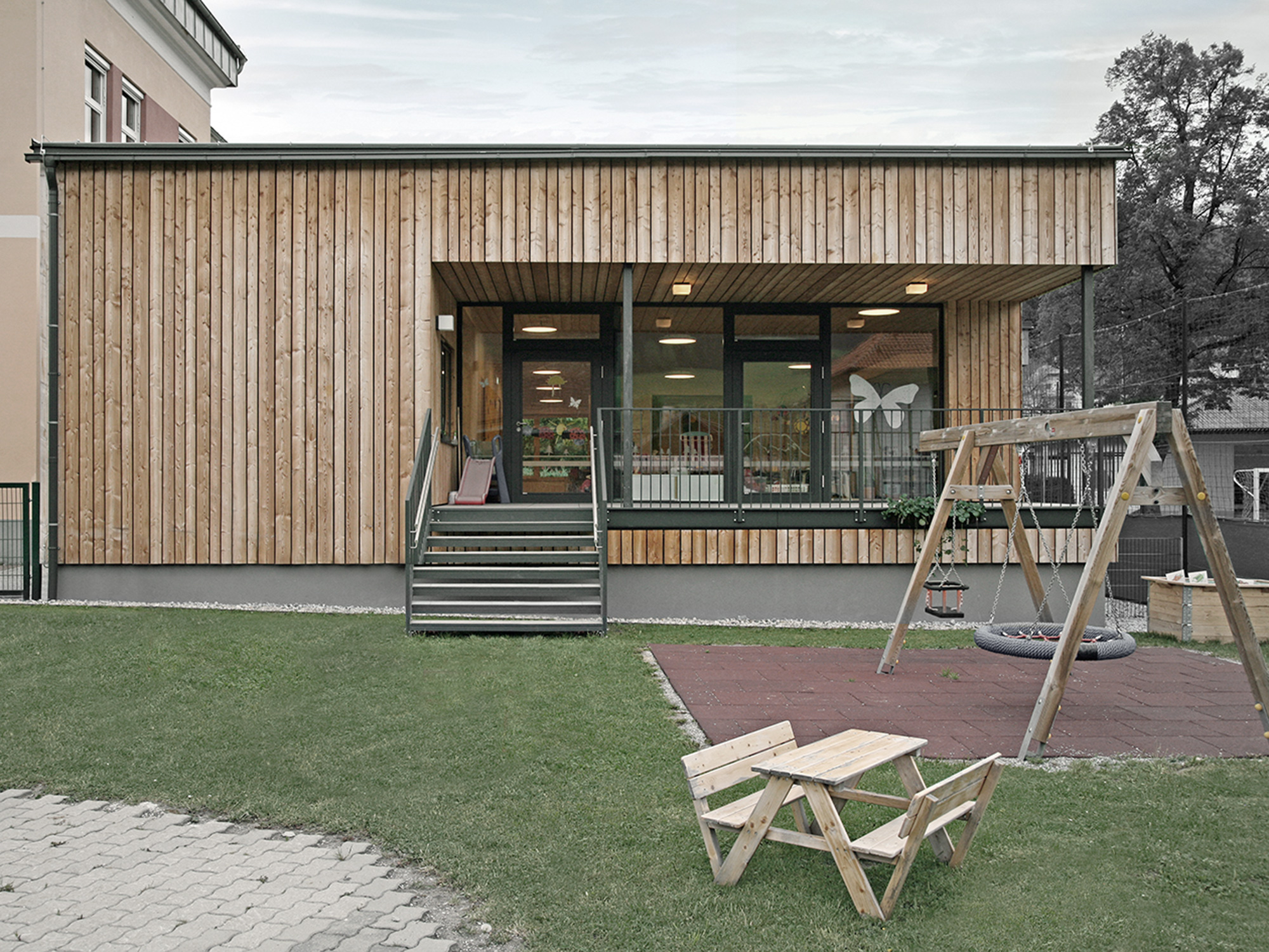 Ein nachhaltiger Holzbau in Form einer Kinderkrippe sorgt in der Gemeinde Mautern nun für die Betreuung der Kleinkinder und bietet durch die natürlichen Materialien ein gesundes Raumklima und eine optimale Luftfeuchtigkeit. In dem einfach strukturierten, eingeschossigen Zubau wurden bewusst fließende Räume und Übergänge geschaffen, sowie eine überdachte Terrasse und ein barrierefreier Zugang beigefügt.