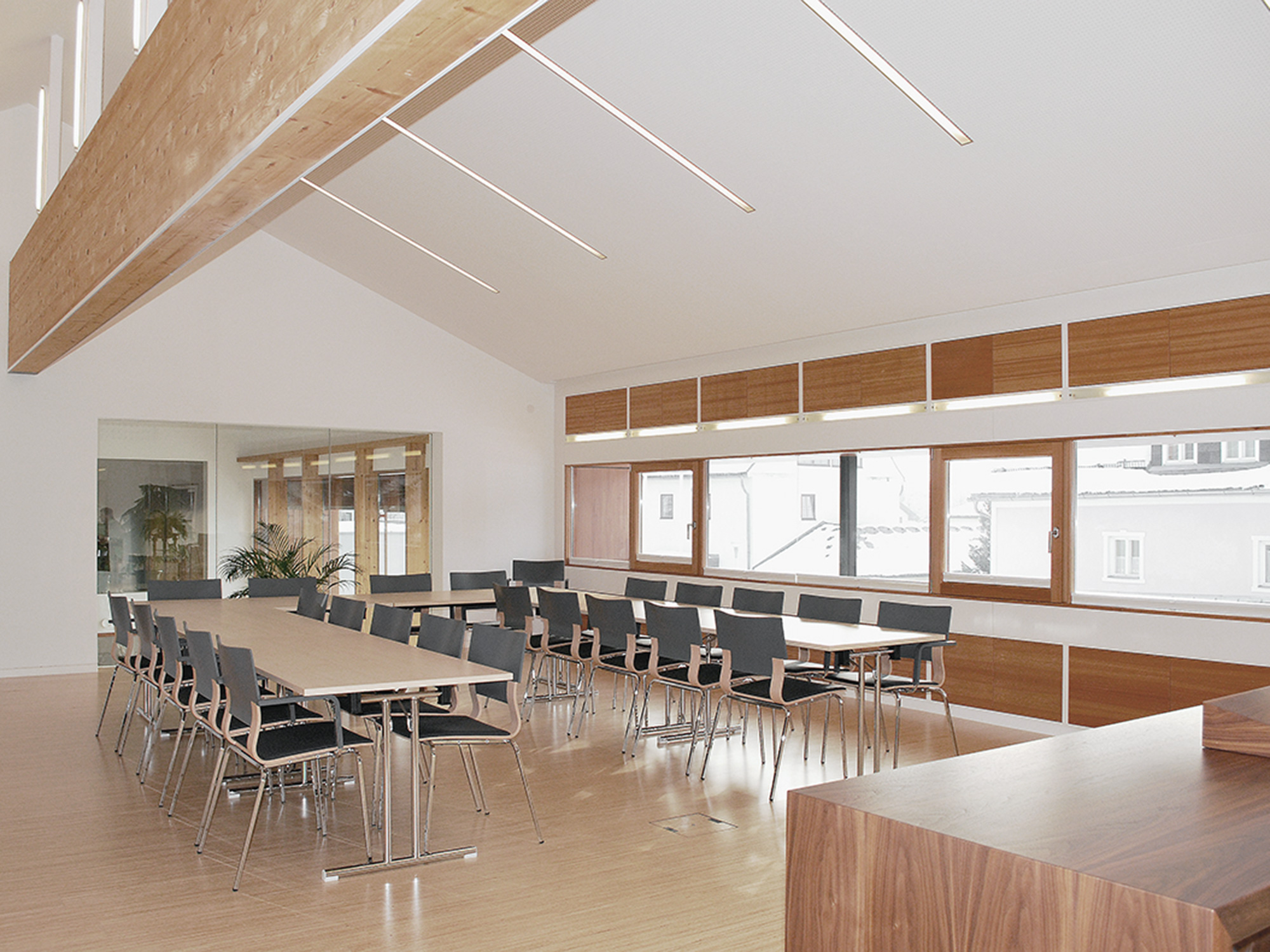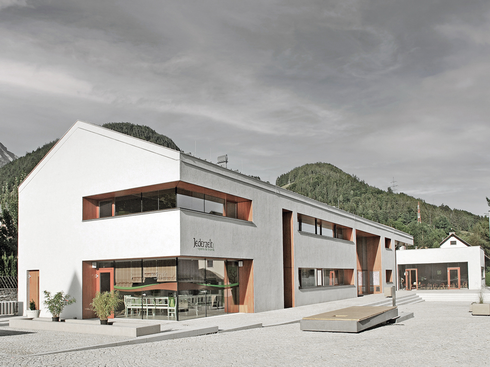 Mit der Errichtung des Gemeindezentrums sorgt die Gemeinde Weißenbach bei Liezen nicht nur für die Belebung des Ortskerns, sondern bildet zugleich die Zentralstelle des Gemeindeamts, sowie Unterkunft für die Bibliothek, den Musikverein und weitere Vereine. Das zum Dorfplatz hin offene Caféhaus trägt den gastronomischen Teil dazu bei und umgrenzt gemeinsam mit der Pfarrkirche als westlichen Abschluss den neu entstandenen Markt- und Veranstaltungsplatz.