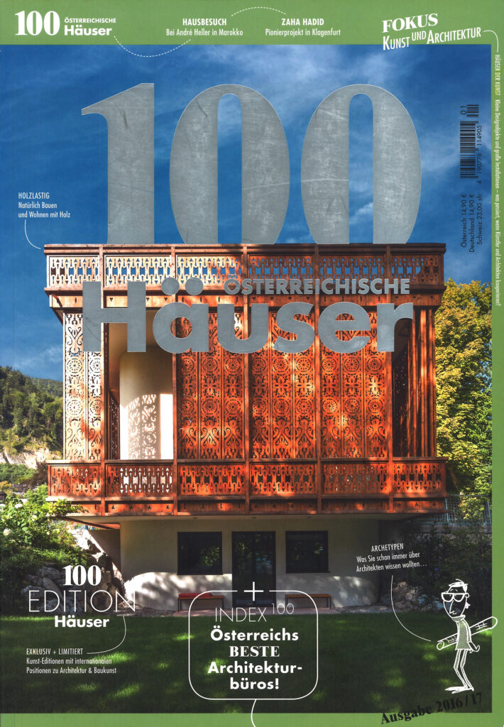 „100 ÖSTERREICHISCHE Häuser“ präsentiert als einziges Magazin die Vielfalt länderspezifischer Baukultur. 2016 ist „Kunst & Architektur“ im Fokus der Ausgabe. Präsentiert werden Produkte, Projekte und Häuser von, mit und für Künstler – und kreative Kooperationen zwischen Künstler & Architekten.