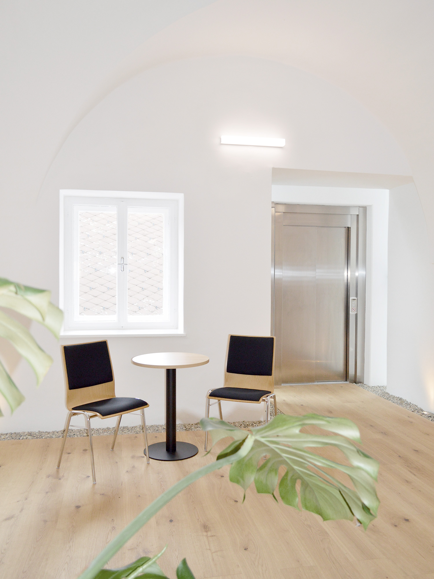 Das historische, denkmalgeschützte Gebäude am Marktplatz wurde gemeinsam mit der Marktgemeinde behutsam revitalisiert. Das ehemalige Gerichtsgebäude erhielt durch die Umsiedelung des Gemeindeamtes und des Natur- und Geoparks neues Leben und fungiert heute als offenes Haus für die Bevölkerung. Die Gebäudehülle wurde im Dialog mit der Umgebung neu bewertet: Fassadengliederung blieb, die Farbgebung tritt zurück, Tür- und Fensterelemente treten hervor. Dachflächen und Raumstruktur wurden für bürgernahe Nutzung angepasst, charakteristische Deckengewölbe erhalten, großflächige Nurglastrennwände schaffen Transparenz. Natürliche Materialien und minimalistische Beleuchtung verstärken den Ausdruck. Hofseitig ermöglicht ein Lift barrierefreien Zugang, der Zubau ordnet sich sensibel unter. Die Neugestaltung wurde 2018 als „Steirisches Wahrzeichen“ ausgezeichnet.